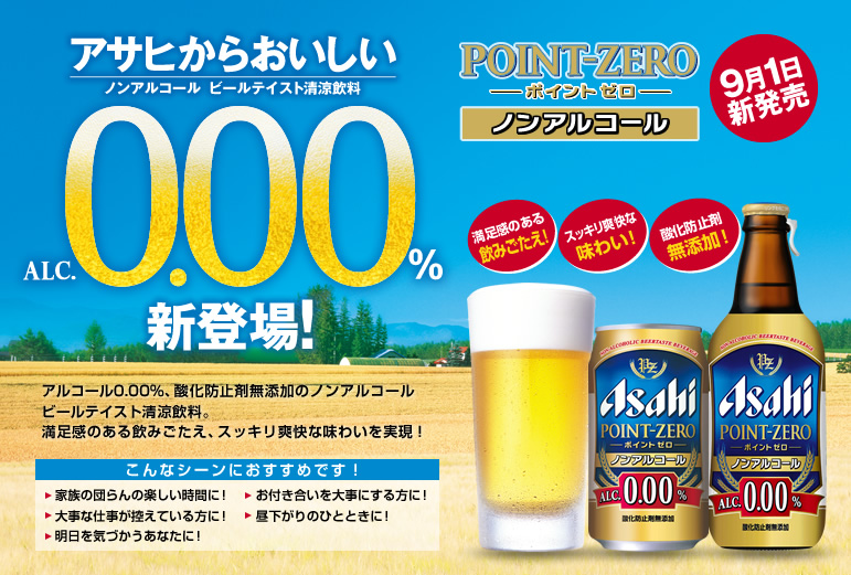 同じ銘柄だと飽きるなと思っていたら、最近アサヒからも類似品がでてきて、先週こちらのポイントゼロをケースで仕入れました。